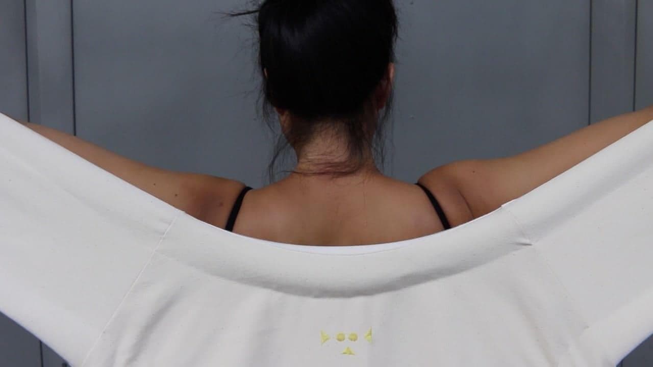 Poulpe s’utilise autour du corps. Pour l’activer, l’utilisateur.trice s’enroule dessous et ressent la gravité.